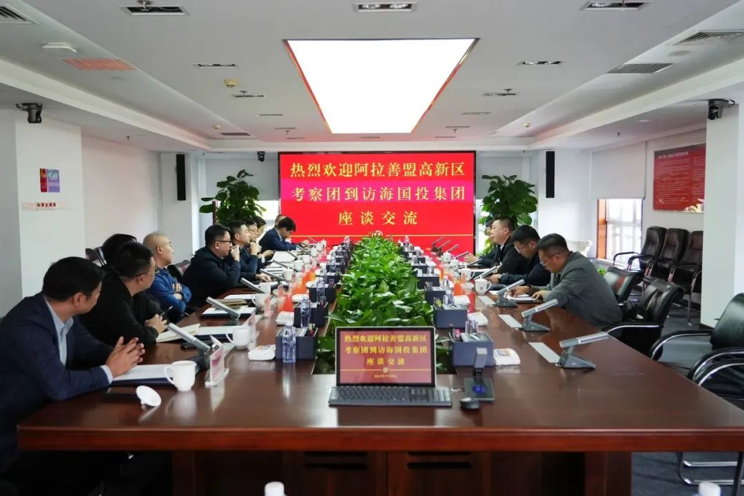 2023年11月3日下午,阿拉善盟高新技術(shù)產(chǎn)業(yè)開發(fā)區(qū)黨工委書記柳仙德,經(jīng)濟(jì)發(fā)展局局長胡開明,投資促進(jìn)局副局長任春暉到訪海國投集團(tuán),就雙方項目推進(jìn)和深化合作進(jìn)行座談交流。集團(tuán)黨委副書記、總經(jīng)理于志偉,總經(jīng)濟(jì)師陳鷗,總經(jīng)理助理王騰,相關(guān)業(yè)務(wù)部門及下屬企業(yè)負(fù)責(zé)人參加座談。
